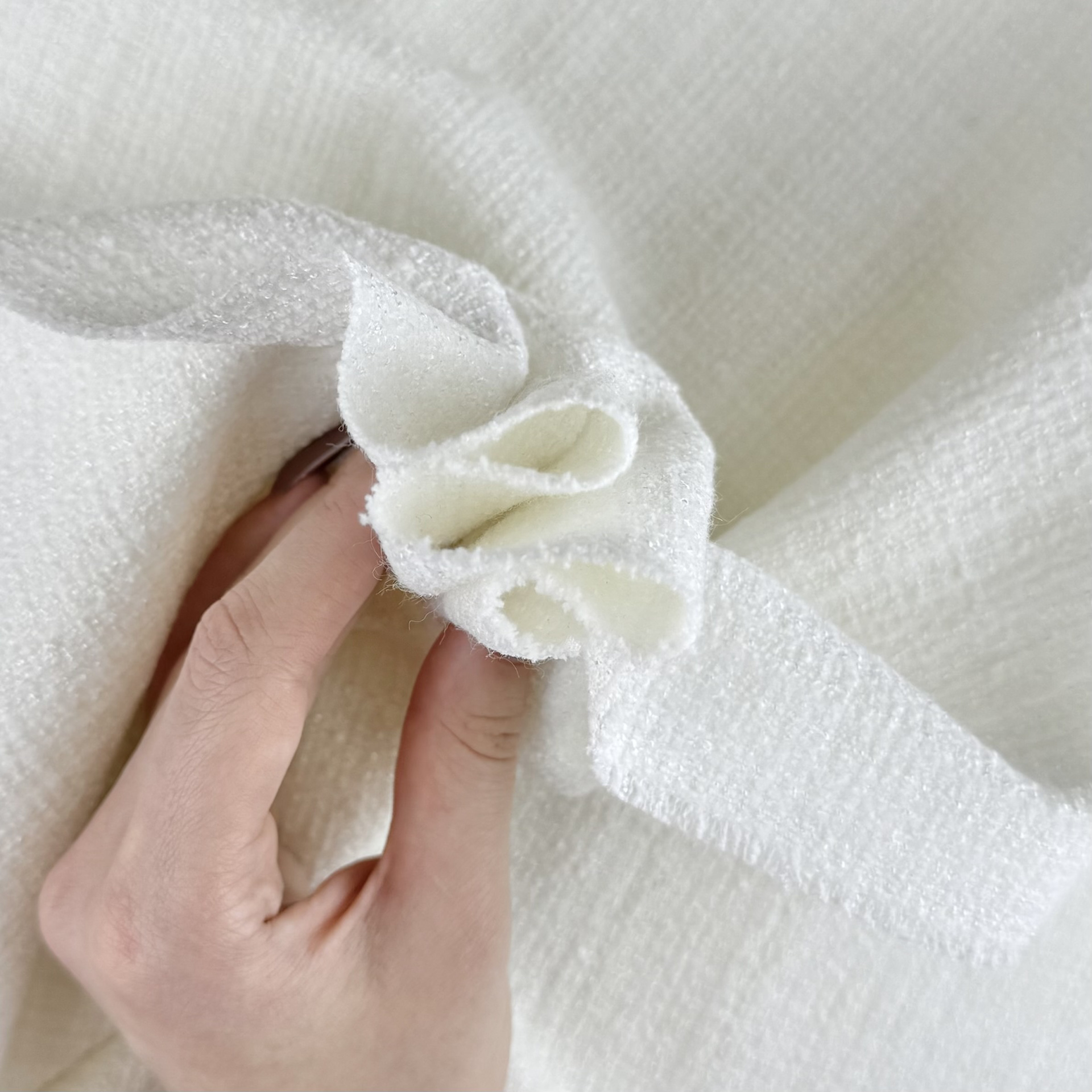 Ткань плотная, не просвечивает, не тянется. Подойдет для легкого пальто, жакета