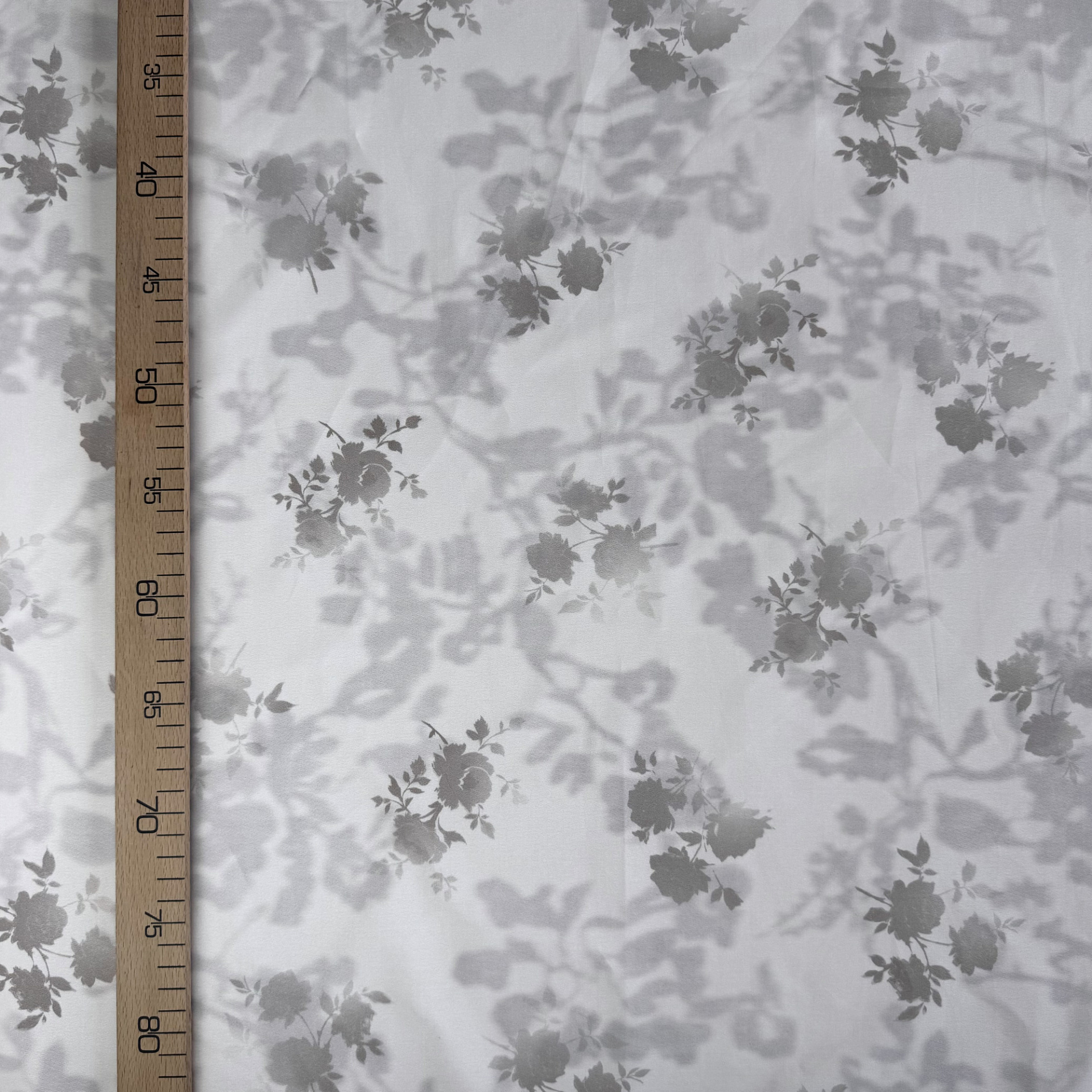 Ткань средней плотности, практически не просвечивает, мнется умеренно, немного тянется. Подойдет для платьев, блуз, рубашек, детской одежды.