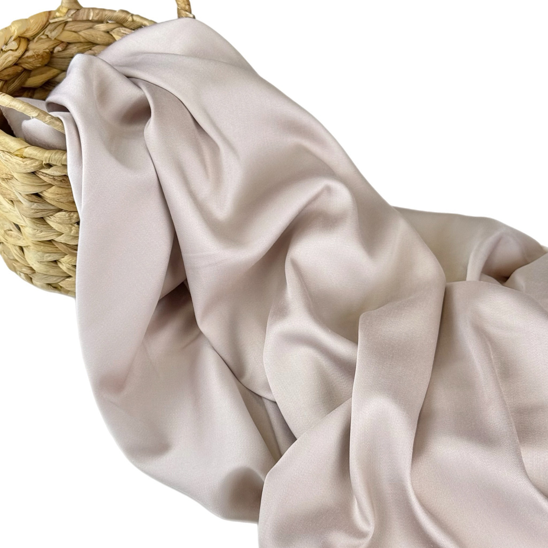 Ткань с сатиновым переплетением, небольшим блеском, немного тянется. Визуально напоминает шелк. Легкая, струящаяся, не электризуется, дышит. Подойдет для домашней одежды, нижнего платья под кружево. Можно использовать в качестве подкладки.