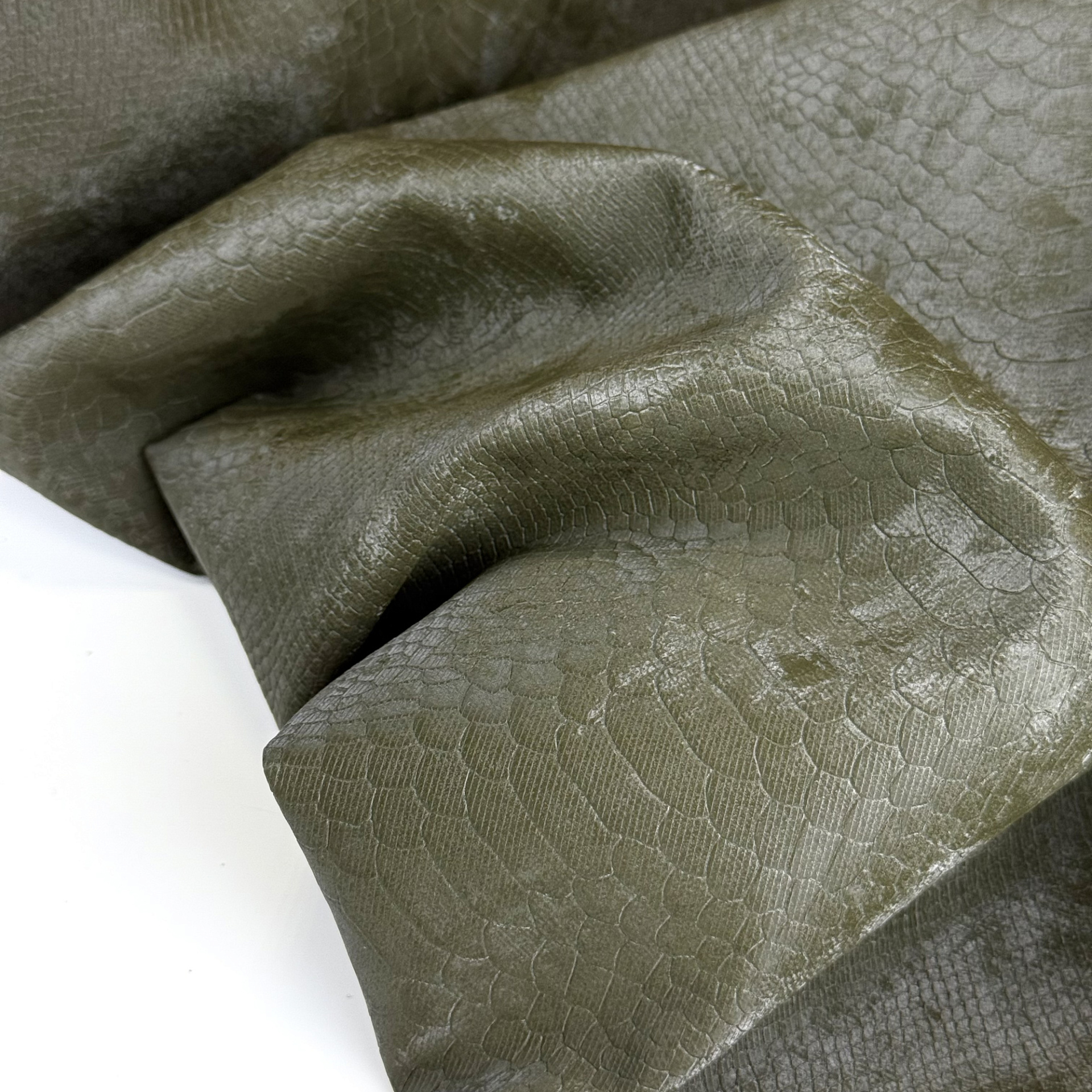 Эко-кожа, средней плотности, тянется, изнанка – тканевая. Подходит для брюк, юбок, шорт, рубашек, тренчей.
