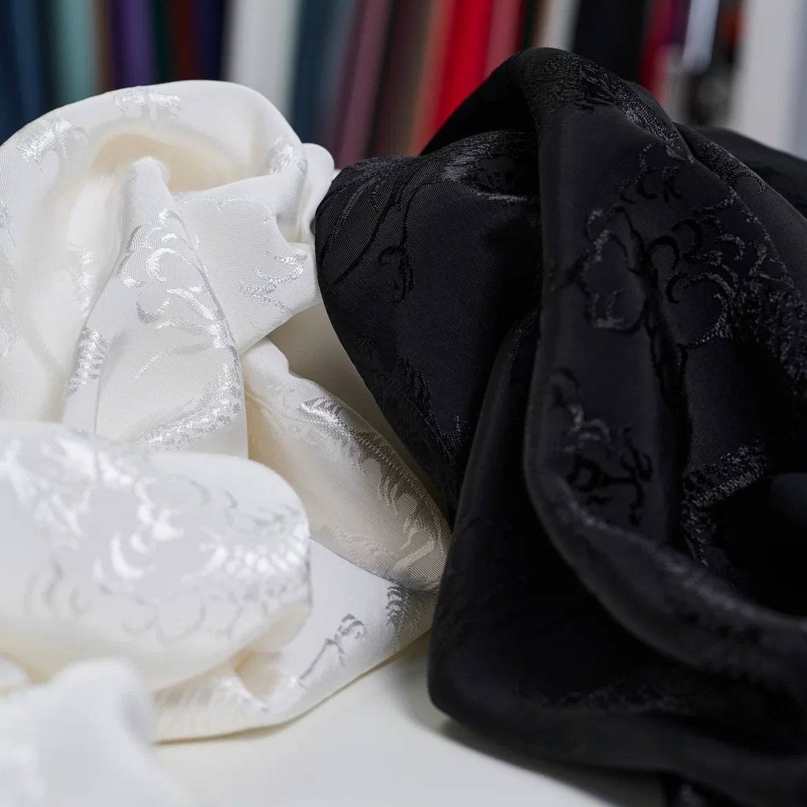 Плательная ткань с сатиновым переплетением, небольшим блеском, немного тянется, не просвечивает. Визуально напоминает шелк. Легкая, хорошо драпируется, не электризуется, дышит. Подойдет для блуз, платьев, костюмов в пижамном стиле, домашней одежды.